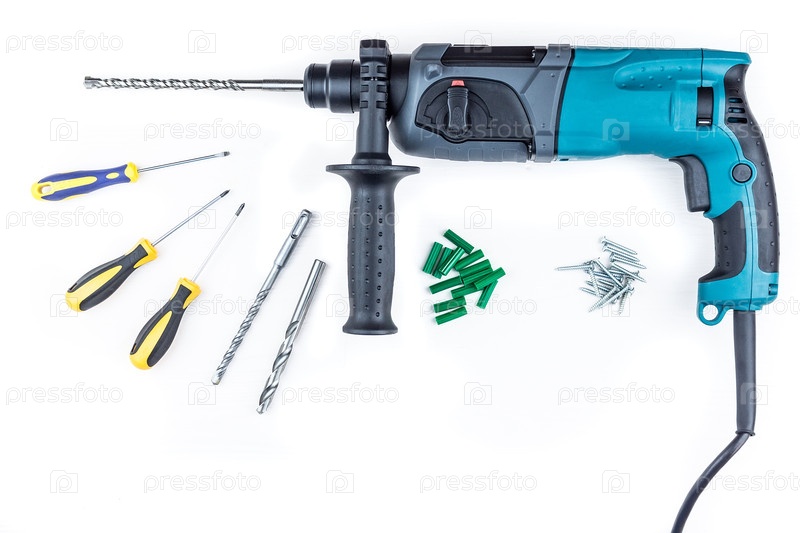 Перфоратор и отвертка с шурупами