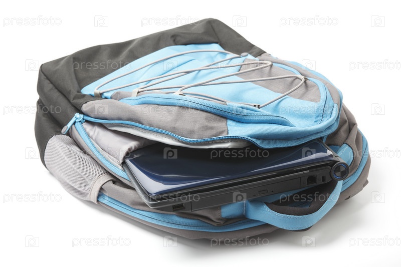 Рюкзак с ноутбуком на белом фоне