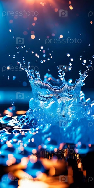 Яркие синие капли воды создают потрясающий всплеск, улавливая энергию и движение в ярком отображении цвета. Момент кажется живым и ярким, демонстрируя красоту природы. Замораживающее движение. Генеративный ИИ
