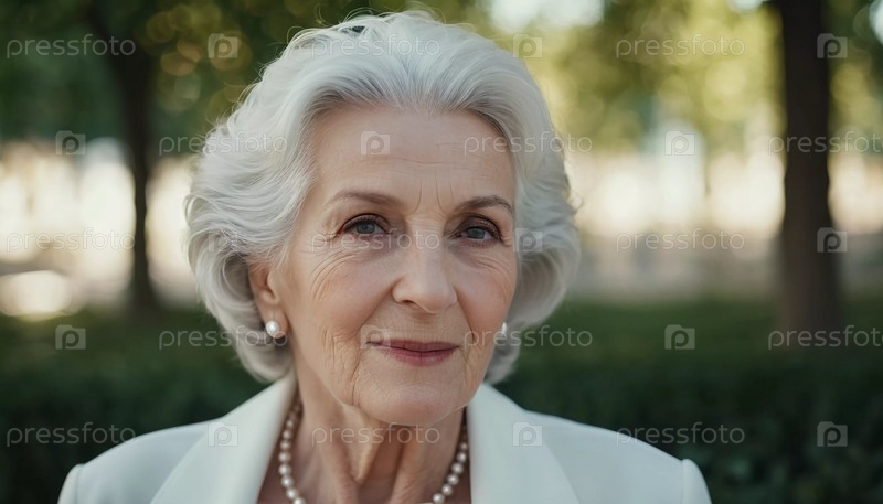 Утонченная пожилая француженка на открытом воздухе. манера поведения раскрывает жизненный опыт и размышления, воплощая изящество и мудрость. ухоженная женщина 70 лет с седыми волосами