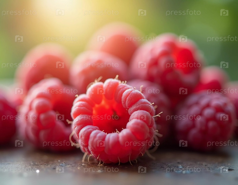 Зрелые ягоды малины представлены на округлом полупрозрачном фоне и с мягким эффектом боке, создающим мечтательную атмосферу.Упаковка для чая, джема или косметики с ароматом малины