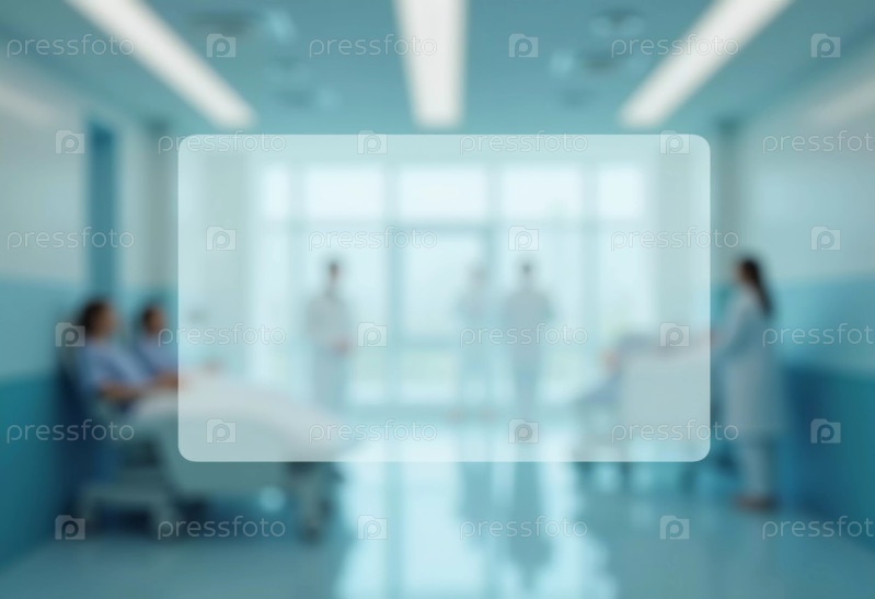 В хорошо освещенной клинике врачи и пациенты взаимодействуют в просторном коридоре, подчеркивая важность здравоохранения и общения в исцелении. Полупрозрачный прямоугольник. Генеративный ИИ