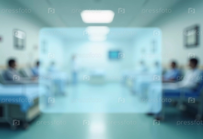 В хорошо освещенной клинике врачи и пациенты взаимодействуют в просторном коридоре, подчеркивая важность здравоохранения и общения в исцелении. Полупрозрачный прямоугольник. Генеративный ИИ