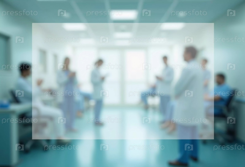 В хорошо освещенной клинике врачи и пациенты взаимодействуют в просторном коридоре, подчеркивая важность здравоохранения и общения в исцелении. Полупрозрачный прямоугольник. Генеративный ИИ
