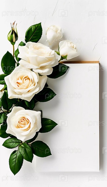 Нежные белые розы и мягкие бутоны создают элегантную рамку вокруг пустой открытки, идеально подходящую для личных сообщений или декоративных целей на любом мероприятии. С днем рождения, днем матери, днем святого Валентина. Генеративный ИИ
