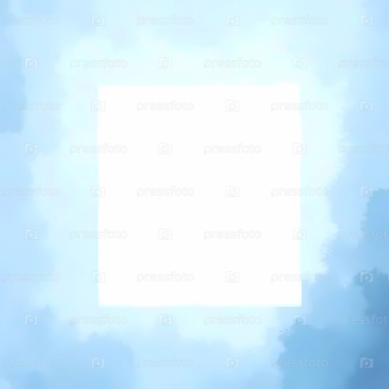 Визуально яркий абстрактный фон сочетает оттенки синего и белого, создавая спокойную атмосферу с пустым прямоугольным пространством, идеально подходящим для добавления текста или графики. Генеративный ИИ