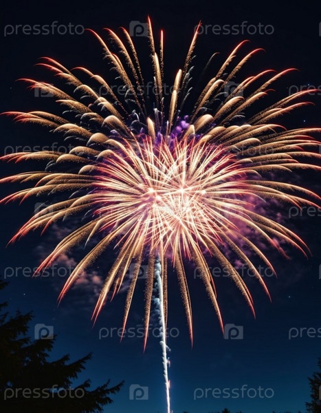 Яркое представление фейерверков освещает ночное небо. Большие вспышки света освещают темный холст выше, создавая завораживающее зрелище цвета и движения. Сгенерировано ИИ. Праздничный фон