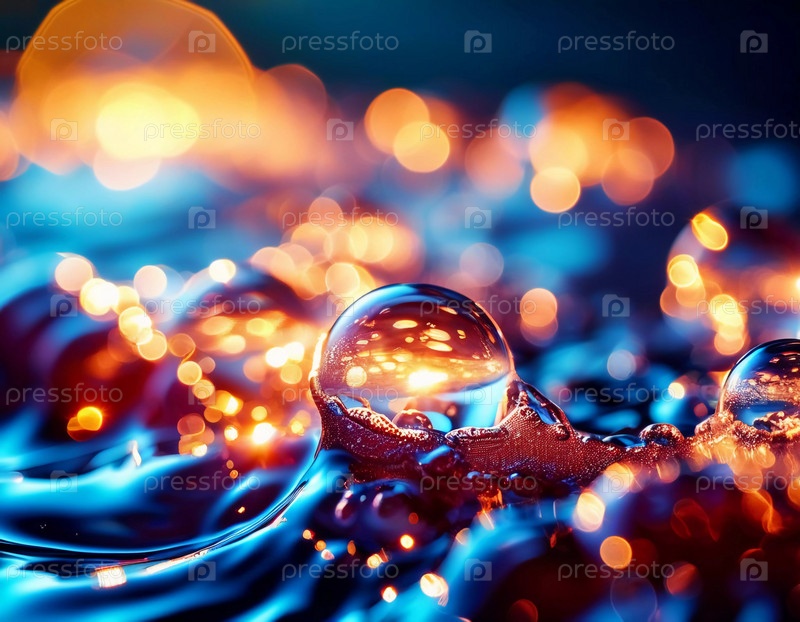 Множество ярких капель взрываются красочным всплеском, создавая потрясающую демонстрацию ярких оттенков на мягко размытом фоне. Застывшее движение. Красота природы в данный момент. ИИ