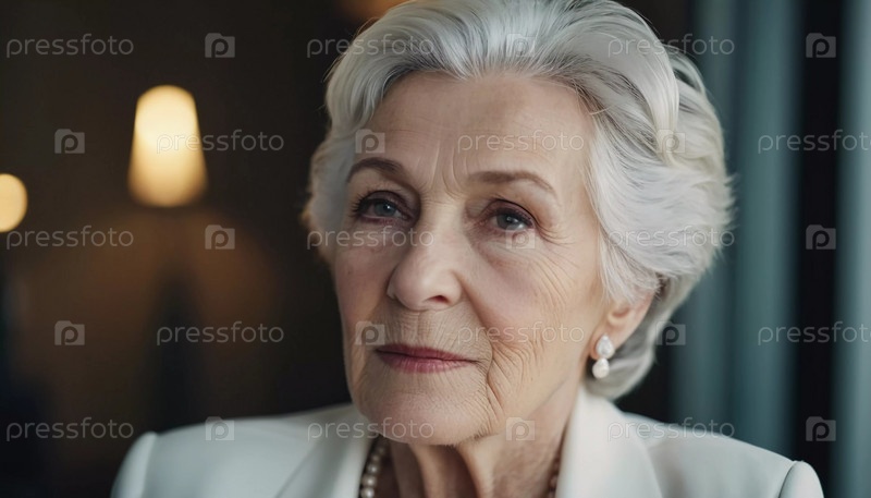 Утонченная пожилая француженка, ухоженная 70-летняя женщина с седыми волосами