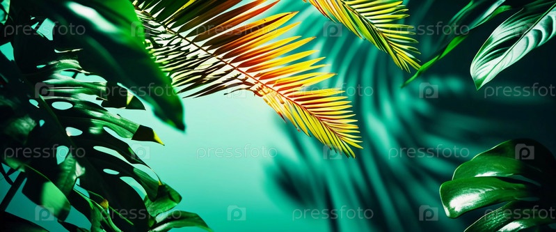 Яркие листья монстеры грациозно свисают, купаясь в мягком солнечном свете, проникающем сквозь полог тропического леса, создавая безмятежную атмосферу. Генеративный ИИ