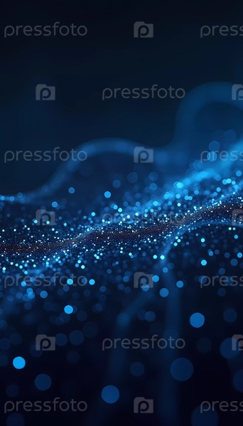 Композиция включает в себя плавные синие линии и светящиеся узлы, которые представляют сложные взаимодействия больших данных в цифровой среде. Футуристический вид подчеркивает технологию и связь. ИИ