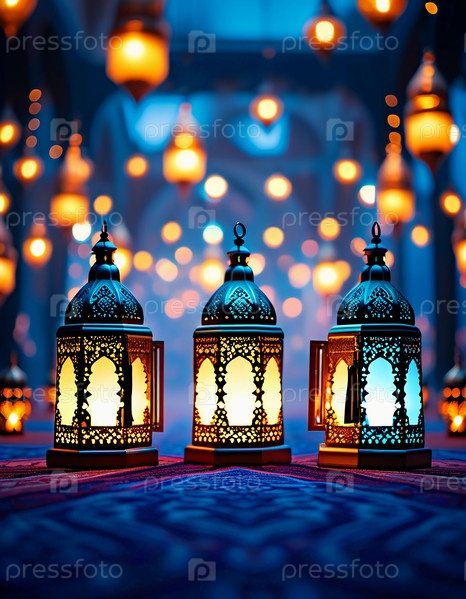Яркие арабские фонарики ярко светят в праздничную ночь Рамадана, создавая теплую и уютную атмосферу для празднования и общественных собраний. Генеративный ИИ