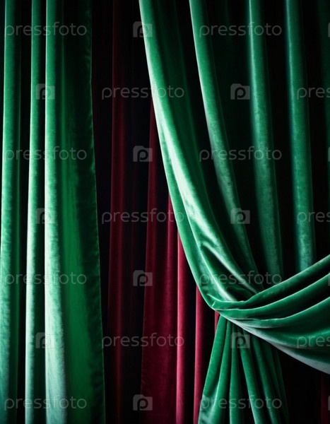 Занавес с мягкими плавными стекающими складками. Глубокий зеленый цвет и роскошная текстура создают драматическую и элегантную атмосферу. Декорация и дизайн интерьера. Дорогая занавес из богатой ткани. AI