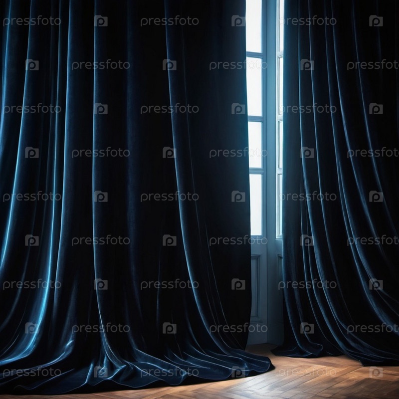 Занавес с мягкими плавными стекающими складками. Глубокий черный цвет и роскошная текстура создают драматическую и элегантную атмосферу. Декор и дизайн интерьера. Дорогая занавес из богатой ткани. AI