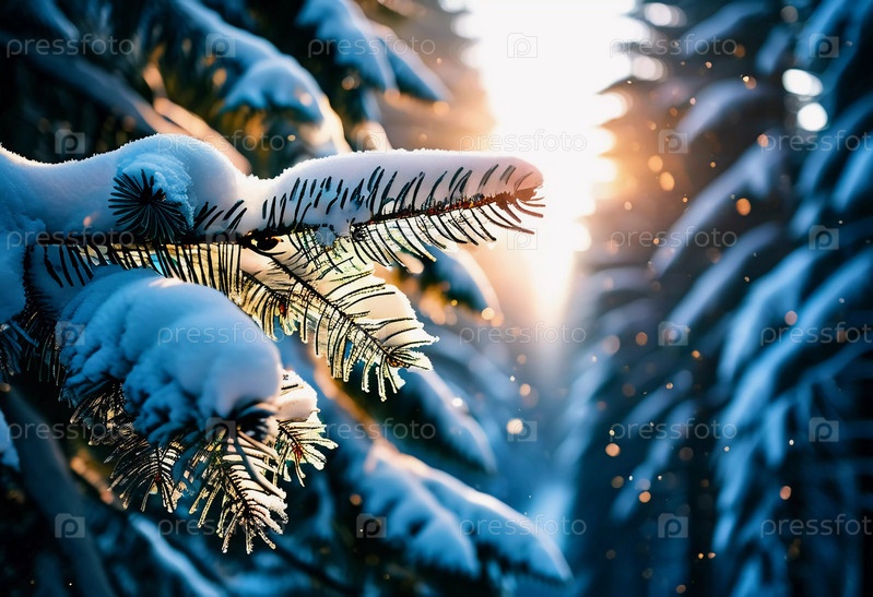 Безмятежный еловый лес, покрытый зимним снегом, демонстрирующий покрытые инеем деревья и мягкий снегопад, создающий спокойную атмосферу в мирной лесной обстановке. Генеративный ИИ