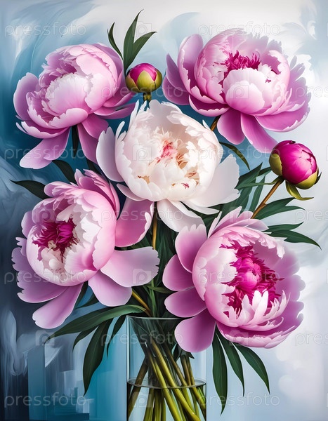 Потрясающая композиция из цветущих розовых пионов заполняет кадр, с мягкими пастельными тонами на заднем плане. Цветы демонстрируют нежные лепестки и богатые текстуры, прославляя природную элегантность. Генеративный ИИ