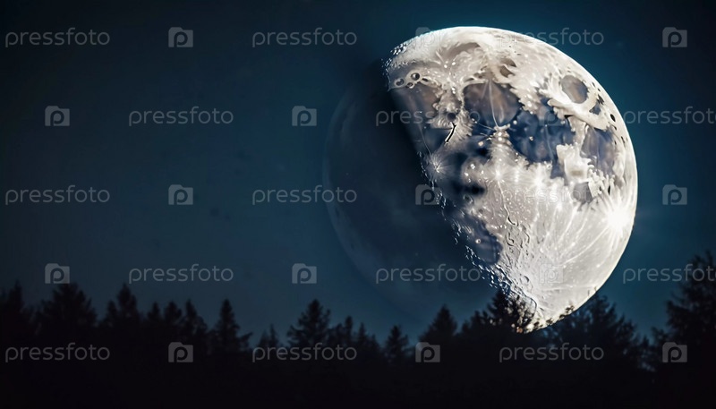 Полная луна освещает ночное небо, отбрасывая безмятежный свет на темный фон, создавая умиротворяющую атмосферу. Луна — единственный естественный спутник Земли. Объект планетарной массы. Генеративный ИИ