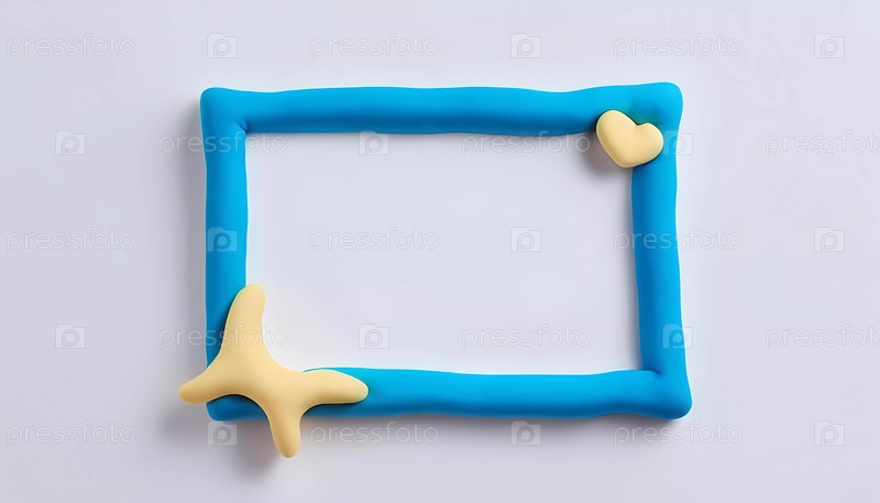Разноцветному тесту для лепки придают прямоугольную рамку с синей окантовкой и маленьким желтым сердечком и звездой на светлом фоне, создавая художественную композицию для показа