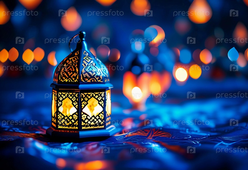 Яркие арабские фонарики ярко светят в праздничную ночь Рамадана, создавая теплую и уютную атмосферу для празднования и общественных собраний. Генеративный ИИ