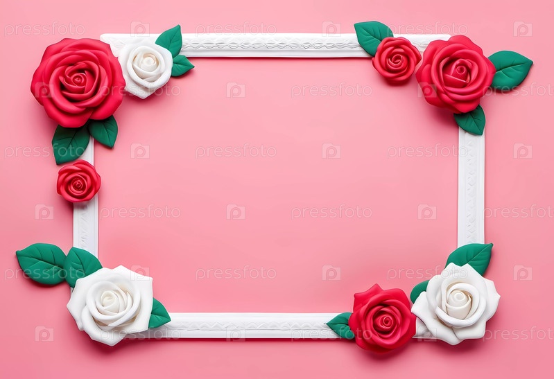Яркая рамка, украшенная красными, розовыми и белыми розами, расположена на нежно-розовом фоне, предоставляя идеальное место для личных сообщений или дорогих сердцу воспоминаний. Генеративный ИИ