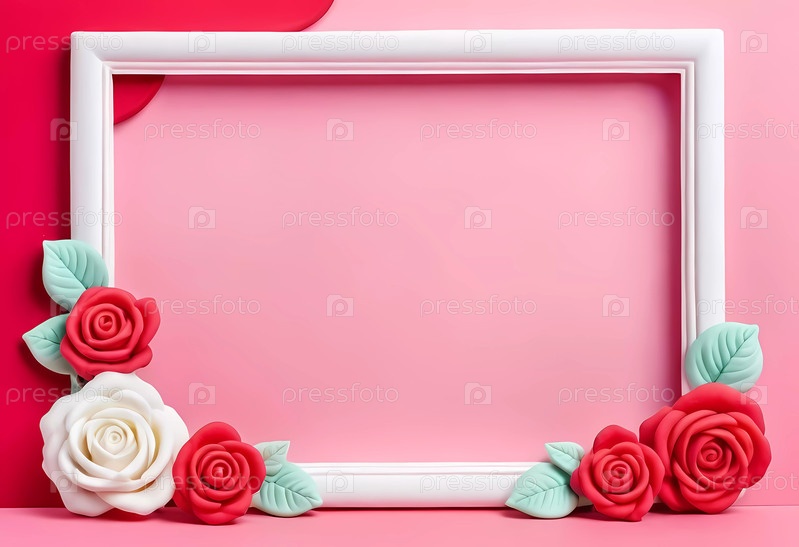 Яркая рамка, украшенная красными, розовыми и белыми розами, расположена на нежно-розовом фоне, предоставляя идеальное место для личных сообщений или дорогих сердцу воспоминаний. Генеративный ИИ