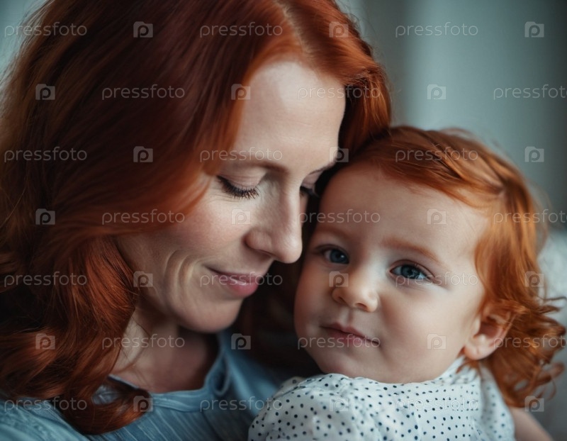 Мать с любовью смотрит на своего младенца, держа его на руках. Милый младенец спокоен. Любовь матери и ребенка. Счастливое детство. Семейные отношения, материнство и плодовитость