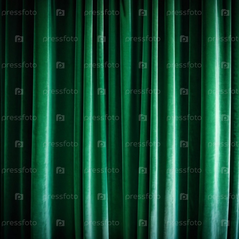 Занавес с мягкими плавными стекающими складками. Глубокий зеленый цвет и роскошная текстура создают драматическую и элегантную атмосферу. Декорация и дизайн интерьера. Дорогая занавес из богатой ткани. AI