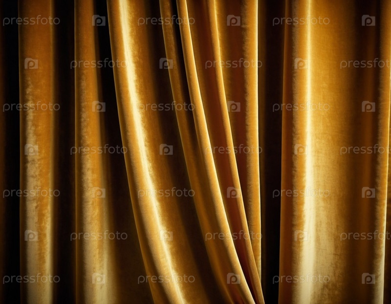Занавес с мягкими плавными стекающими складками. Глубокий золотистый цвет и роскошная текстура создают драматическую и элегантную атмосферу. Декор и дизайн интерьера. Дорогая занавес из богатой ткани. AI