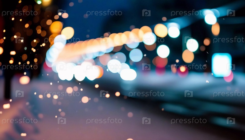 Зима приносит мягкий снегопад на городские улицы, где разноцветные огни висят над головой, создавая теплую и праздничную атмосферу. Эффект боке от огней добавляет причудливый штрих, подчеркивая радость сезона