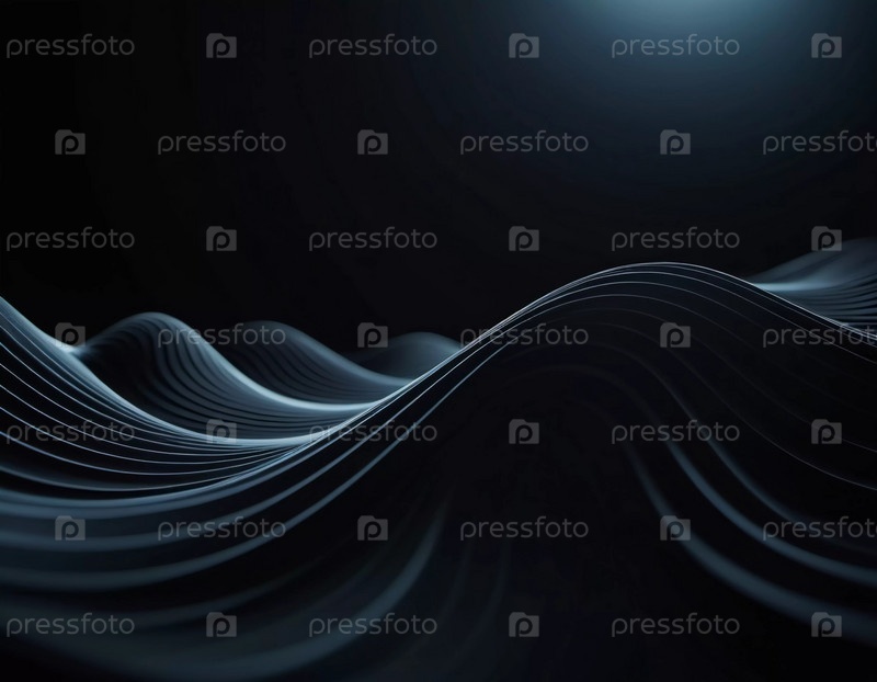 Плавные трехмерные волны черного цвета создают завораживающий абстрактный узор с плавными изгибами и световыми градиентами на темном фоне, вызывающем артистизм и спокойствие. Генеративный ИИ