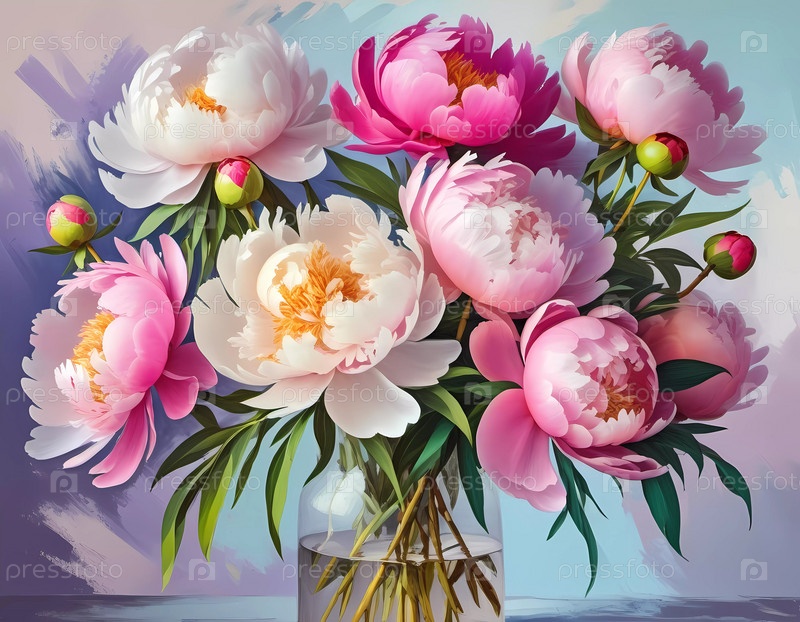 Потрясающая композиция из цветущих розовых пионов заполняет кадр, с мягкими пастельными тонами на заднем плане. Цветы демонстрируют нежные лепестки и богатые текстуры, прославляя природную элегантность. Генеративный ИИ
