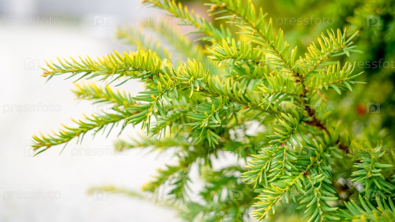 Зеленая ветка хвойного дерева, крупный план абстрактная текстура