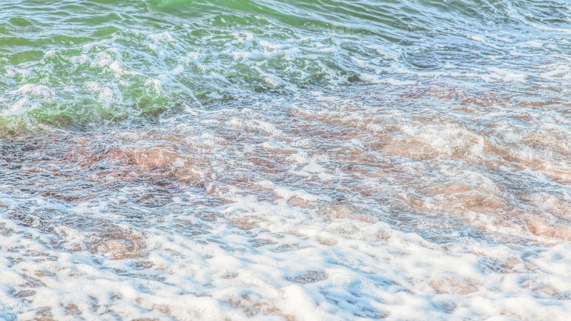 Кристально чистая лазурная вода с морской пеной, морской пейзаж на заднем плане