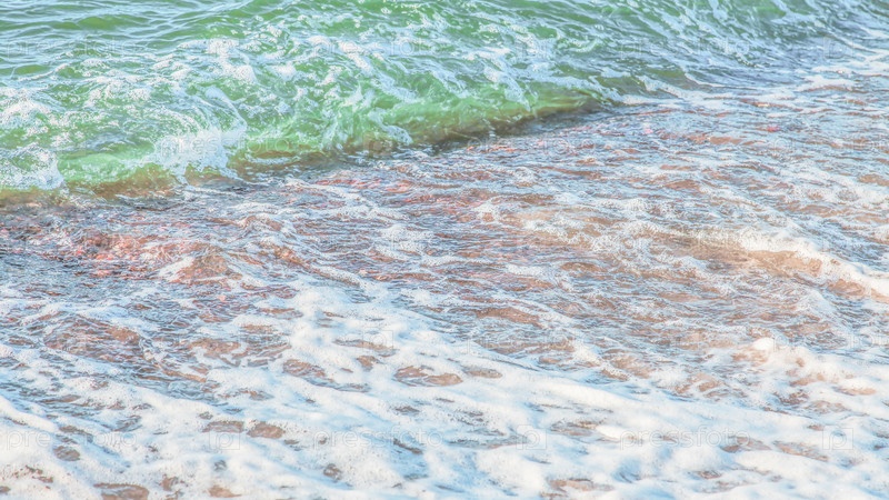 Кристально чистая лазурная вода с морской пеной, морской пейзаж на заднем плане