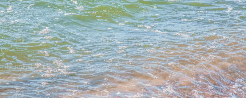 Кристально чистая лазурная вода с морской пеной, морской пейзаж на заднем плане