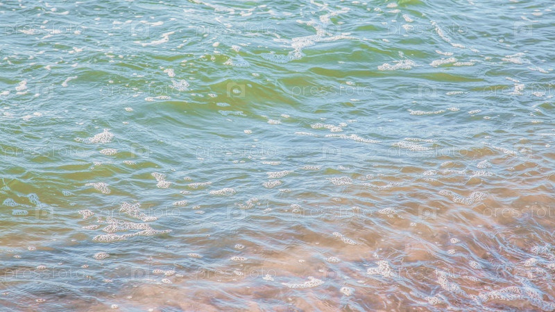 Кристально чистая лазурная вода с морской пеной, морской пейзаж на заднем плане