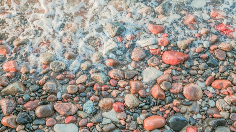 Морская пена на мокрой гальке на пляже в солнечный день, крупный план