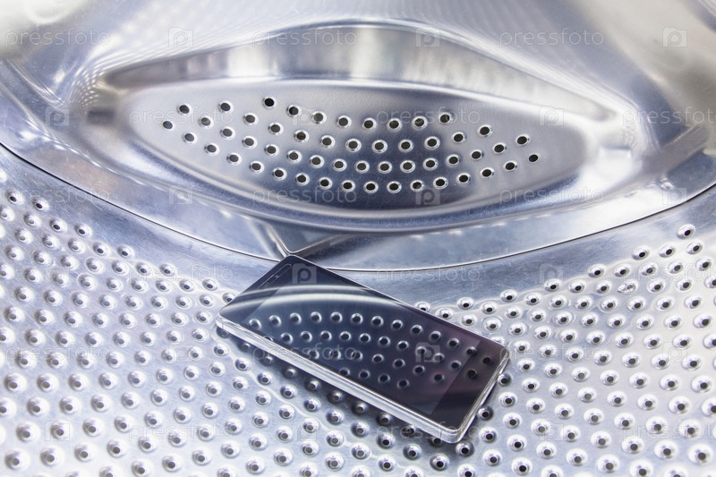 Выпавший из кармана одежды мобильный телефон находится внутри барабана стиральной машины