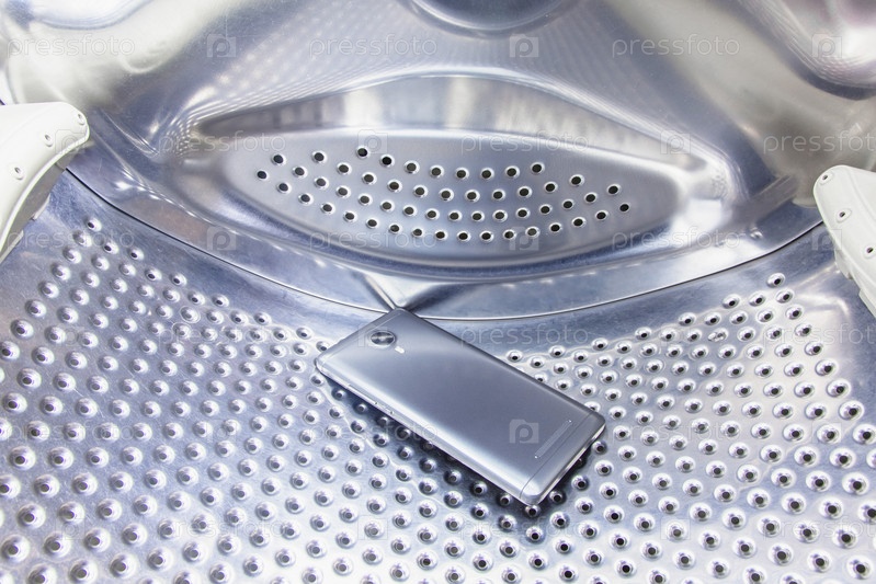 Выпавший из кармана одежды мобильный телефон находится внутри барабана стиральной машины