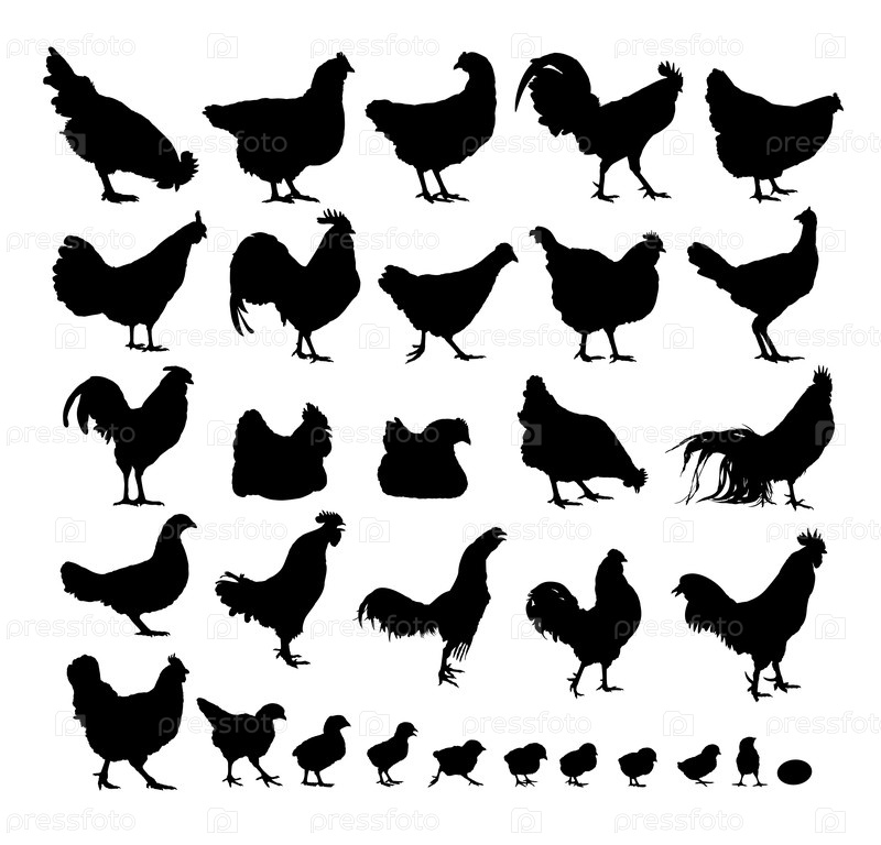 Набор силуэтов кур и петухов