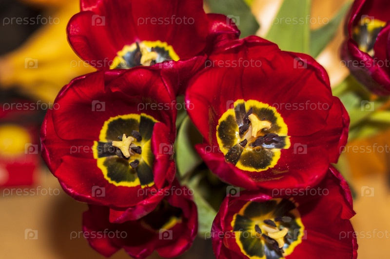 Крупный план свежих красных тюльпанов. Цветы