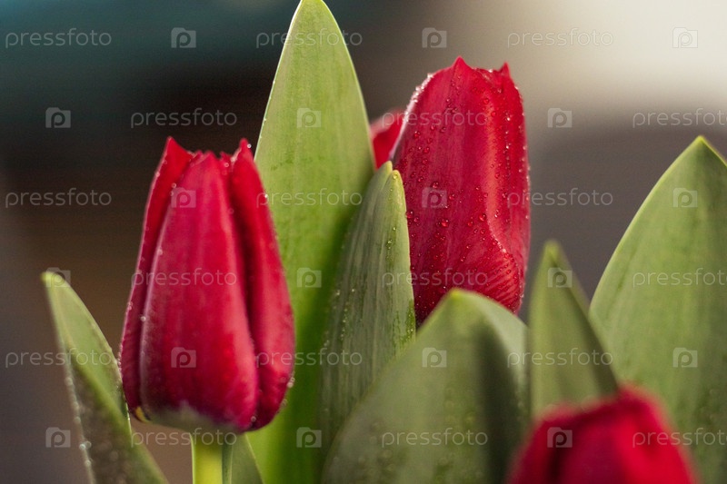 Крупный план свежих красных тюльпанов. Цветы