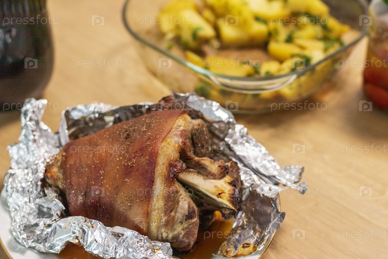 Крупный план жареной свиной рульки. Еда
