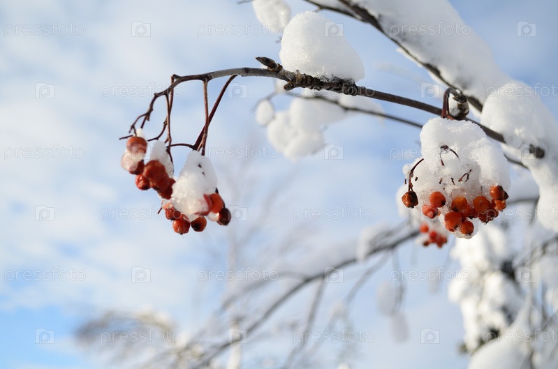 Красная рябина в снегу