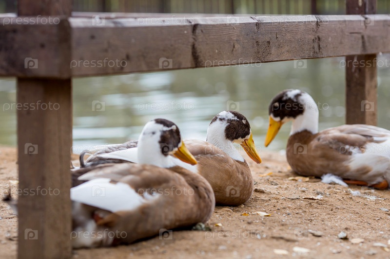 Домашние животные. Птицеферма с домашними утятами. Концепция животноводства и сельской жизни. Птицеводство на частной экоферме