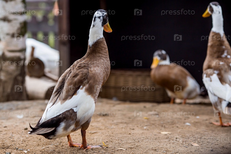 Домашние животные. Птицеферма с домашними утятами. Концепция животноводства и сельской жизни. Птицеводство на частной экоферме