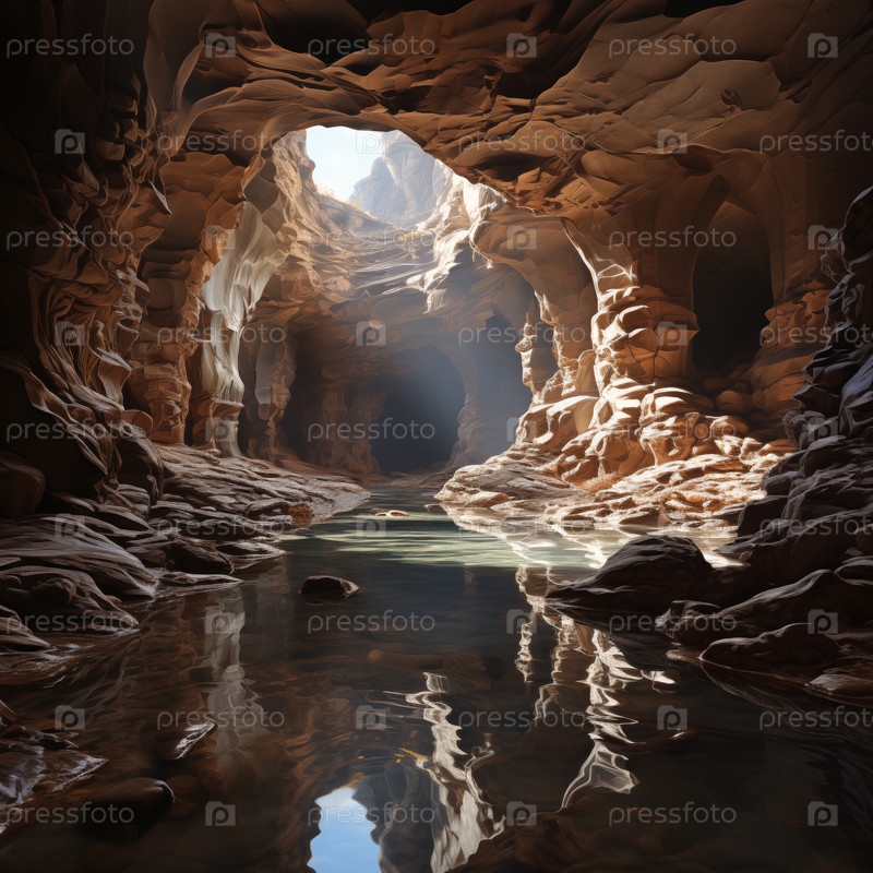 Подземное озеро на дне каньона в пустынной местности