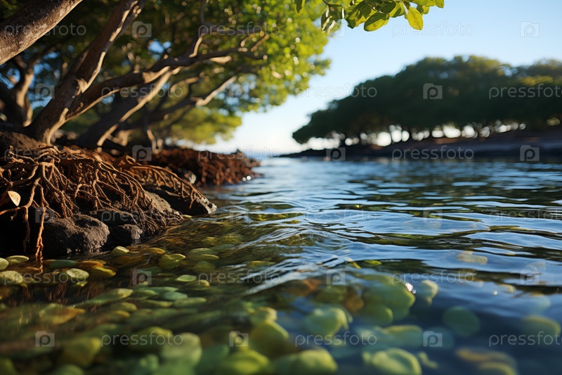 Мангровые деревья на берегу моря, крупный план