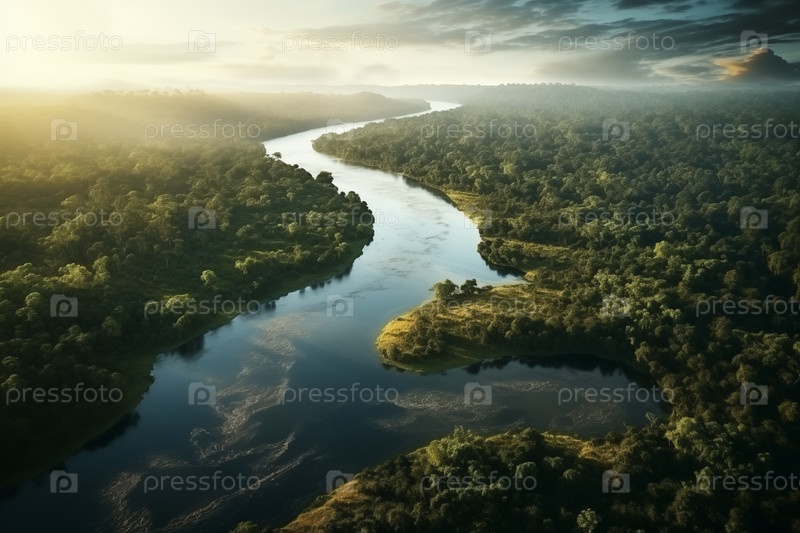 Вид с воздуха на тропический лес во время сезона половодья