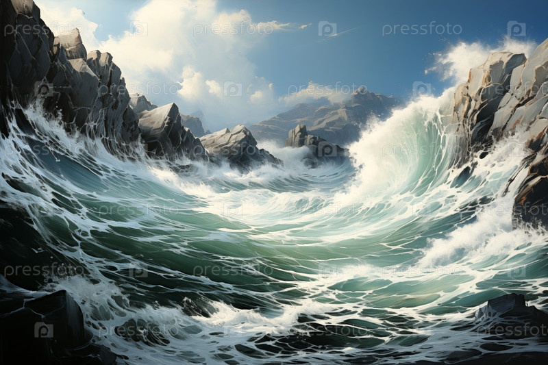 Морской пейзаж - штормовой прибой у прибрежных скал